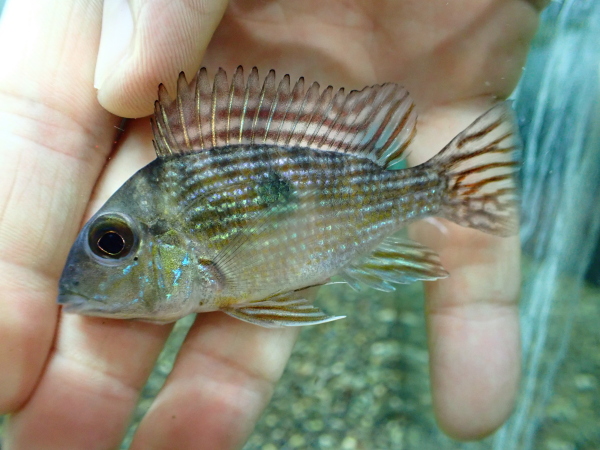 パラナイーバ産のドルミテーターゴビー。前はエクアドルとかペルーの太平洋沿岸部に分布する種類がよく来てて、大西洋沿岸部に分布する種類はほとんど来てなかったんですが、最近はどっちも全然来てませんね・・・。そんな中で今回入荷した久しぶりのドルミテーターは南米大陸東側の大西洋側からの入荷です。青い目と大きなヒレがすごく良いです!マニアックな魚ですが個人的には大好きな魚なので超オススメです!ハゼの仲間ですが純淡水で問題ありませんしとても丈夫な魚です。