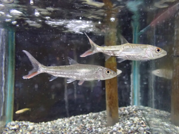 ナイルアロワナとも呼ばれるアロワナに近縁な古代魚の1種。アロワナに近縁ではありますが食性は全く違い、ヘテロティスはプランクトンやベントスを食べる魚です。そういうわけで小さいうちなんかは痩せやすいのでこまめな給餌が飼育のコツです!最初は朝晩1日2回の冷凍赤虫から始めましょう!慣れてくると沈下性の粒の細かい人工飼料も普通に食べるようになりますよ!中段左の画像です。