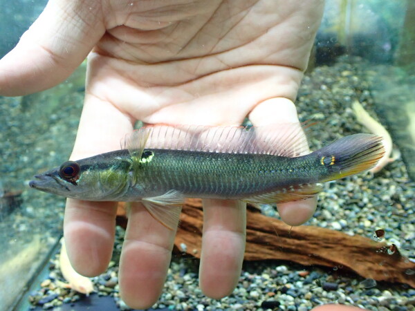 小さめのメダカなら食べれるサイズ。アカヒレしか食べられないサイズだと大変ですからね・・・。小さいベビーでも野性味あふれる捕食シーンが観察できますし、牙魚飼育の醍醐味が味わえますよ!