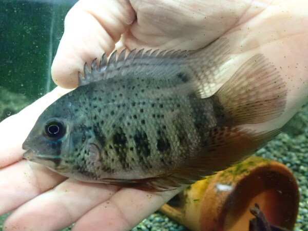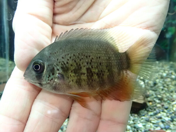 ゲオファーガスに近縁なシクリッド。これも今回サイズの割にかなりお買い得でオススメです!安くても侮れないです!すごくキレイになる魚ですよ。