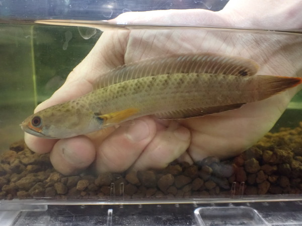 これも上記のスネークヘッドと一緒にララのインボイスで輸入された個体。でもこっちは背ビレ後部のスポットも無いし完全に普通のドワーフ・・・。ベンガルオレンジの名前でよく来てるやつですね。だからこっちは値段も普通のドワーフの値段です・・・。
