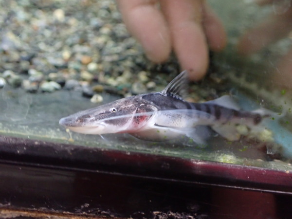 2019年に新種記載されたChanna raraということで輸入されたスネークヘッド。でも来てみたらどうもララじゃない・・・。ララはレインボースネークヘッドを汚くして腹ビレを付けたようなスネークヘッドで、レインボーみたいに背ビレ後部にスポットがあり胸ビレに明瞭な縞模様があるのが特徴。今回来たこいつ、背ビレ後部にスポットはあったけど見た感じはかなりドワーフっぽい。胸ビレの模様は付け根付近にうっすらあるだけでまさにドワーフの胸ビレといった感じ。鱗の模様とかもちょっと変わってて普通のドワーフとは何となく違うし変わったスネークヘッドだとは思いますが、ララかと聞かれたら違うし、ドワーフかって聞かれたらたぶんドワーフ・・・。ネットで画像を検索すると背ビレにスポット入ってるドワーフもいるみたいだからそういうタイプのドワーフなのかも?でも背ビレにスポット入ってるドワーフなんてかなり珍しいと思いますよ!このタイプ入荷は1匹のみです!マニアの方はお見逃しなく!!