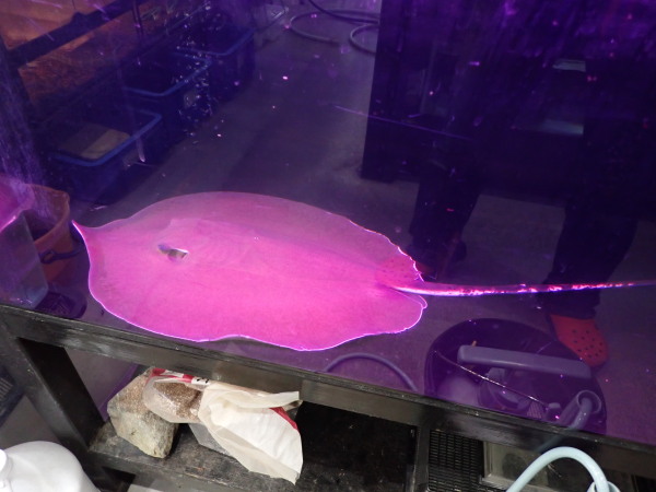 世界最大の淡水エイ入荷です!体色は地味ですがその存在感は他のどの淡水エイにも劣りません!今までも観賞魚として国内へ輸入された例はいくつもありますし、当店でも10年位前(もっと前かも?)に1度入荷したことがありましたが、近年では現地での保護が厳重になってきており今後は輸入もどんどん難しくなっていくと思われます。そういうわけで次回の入荷は全くの未定です!世界最大の淡水エイ、飼育できる設備が準備できる方がいましたらぜひどうぞ!上段、中段左の画像です。3つの画像は同一個体です。上段の画像は照明の関係で赤っぽく写っていますが、実際は中段左の画像みたいな色です。