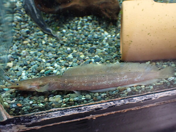 ベレン便で輸入されたアナドラスのようなナマズ。ペルー産のグリプスも在庫いますが色が全然違います。グリプスはサンドベージュというか薄い体色をしていますが、今回来たのは濃い焦げ茶っぽい感じの色をしています。尾ビレ短くなてますが再生しますのでご安心ください。入荷は1匹のみ!右上の画像です。