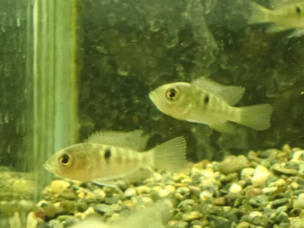 超久しぶりの入荷です!すごく良い魚なので個人的には大好きなんですが、あまり人気は無いようでいつも売れ残ります・・・。ペルビアンバスケットマウスと呼ばれたりもしますが、スペクタビリスとかのカクエタ属のバスケットマウスとは属が違う全然関係ない魚です。大きくなるとヒレ先が伸びてきて喉が黄色く発色し、臀ビレもオレンジに発色したりで結構キレイになりますよ。バスケットマウスと呼ばれるだけあって口が大きくて顔と体の比率が少しアンバランスに見えるところとかがけっこうかわいいんです。性格もシクリッドにしては大人しい方で混泳もさせやすいですよ!入荷少ない珍しい魚ですがサイズ小さいので超お買い得です!気になる方はぜひ!中段左の画像です。