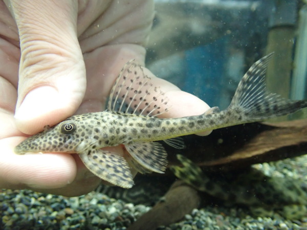 コロンビア産のクプープレコ。白地に細かいスポットが入ったキレイなプレコ。入荷したばかりでちょっとスレてますので少しお店で落ち着いてから販売する予定です。