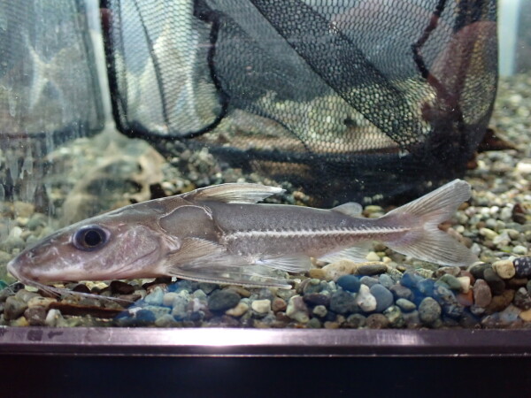 これも珍しいです。トラキドラスみたいに目は大きめですが、体型はトラキドラスを伸ばしたような感じの細長い体型です。これもかわいいくて大人しいナマズです。小型のドラスがお好きな方いかがですか?左下の画像です。