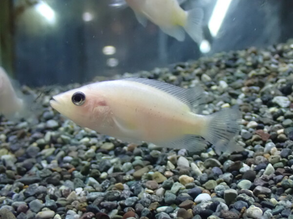 ドヴィの色彩変異個体です。ザンティックというと本来は黄変個体のことですが、見た感じは黄変個体というより白変個体という印象。ここ1年位でしょうか、ちょっと大きいのが輸入されたりしてましたがかなり高価な魚でした。それが今回国内でブリードに成功したということで超お手頃価格で販売できることになりました!!シクリッドマニアの方は必見です!海外の商業目的のブリードではないので次回の入荷があるかは分かりません。今回限りのリリースになる可能性もありますのでお見逃しなく!!大きくなるシクリッドです!この体色で成魚になったらすごい存在感ですね!中段左の画像です。