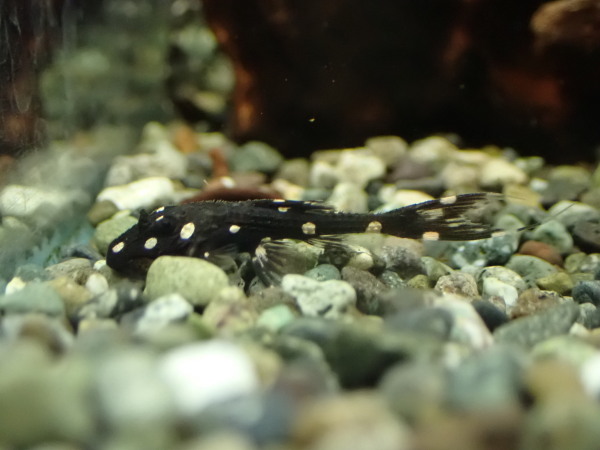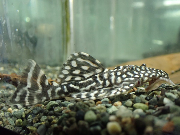 高くないし見た目キレイだしで人気のオレンジフィンカイザープレコです。細かいスポットとヒレの縁のオレンジがキレイですね!ちょっと値段上がりますが12cm位の大きい個体も1匹在庫いますのでお好きなサイズをどうぞ!中段左の画像です。