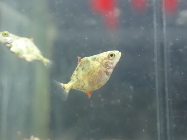 全身メタリックグリーンな幼魚色が超キレイなパクー。体が緑色なのは小さいうちだけで、成長すると今度は体が赤くなります!入荷の少ない魚で今回もかなり久しぶりの入荷です!そんなにたくさんは入荷していませんので気になる方はお早めに!中段左の画像です。