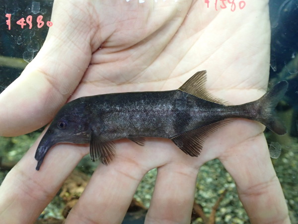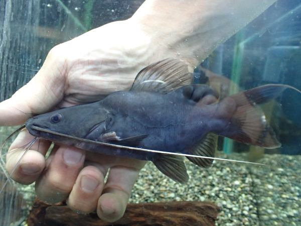 超久しぶりの入荷です!肩がぐんと盛り上がる独特の体型をした大型のナマズ。黒っぽい体色が渋いです!以前はよく見ましたがここ最近は入荷激減で滅多に入ってこなくなりましたね。大きくなると上半身が極端に太くなり、ボールを飲み込んだような体型(ちょっと言いすぎかな??)になります。そういう太さの出た個体はめちゃくちゃ迫力あってかっこいいんですよ!右上の画像です。