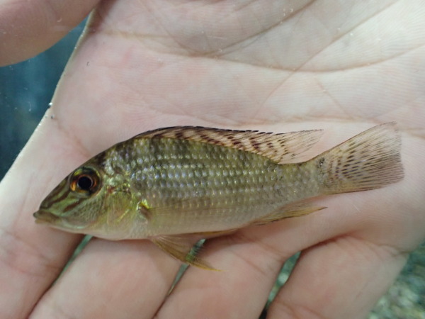 成長すると体色は緑がかった金色、ヒレは青くなりすごくキレイになります!値段安いですが侮れないアイスポットシクリッドです!中段左の画像です。