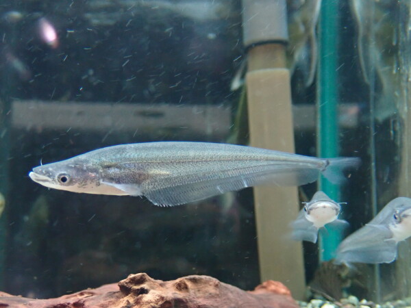 普通のデンキナマズとは属が違う細長いデンキナマズ。滅多に輸入されない珍しい種類です。あまり大きくならない小型のデンキナマズで、性格も温和で電気もちょっと優しめです。以前入荷した個体はちょっと触った位では全然電気を出さなかったので、こいつ電気出せないんじゃないかと思ったほどでした。触ったくらいじゃ電気出さなくても握ったらさすがに電気出しました・・・。大きな水槽も必要ないし、個体差はあると思いますが大人しくて電気もそんなに出さないようなので管理もしやすいと思いますよ!とは言え不用意に触るのはダメですよ!いきなりガツンと電気出すことだってできるかもしれませんからね!