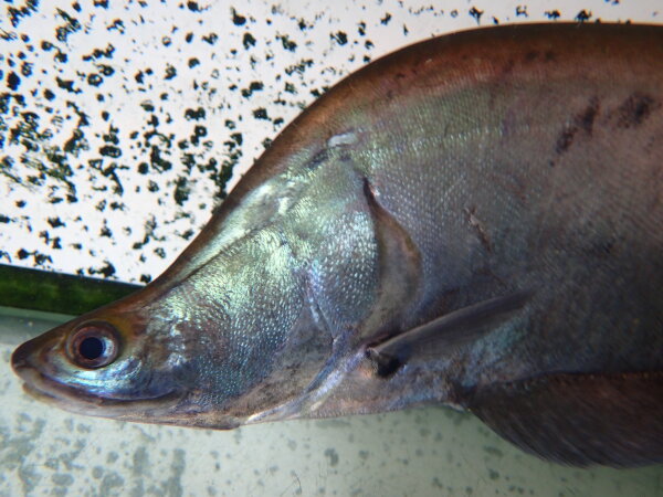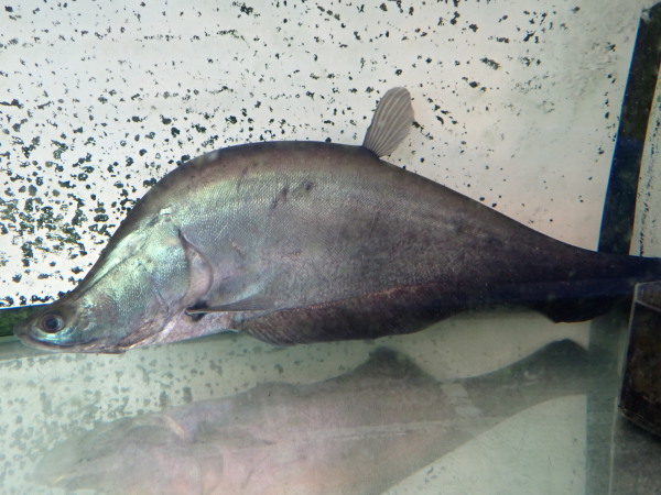 ビッグサイズなロピスが入荷!輸入量の少ない希少なナイフフィッシュで緑や紫に光る黒い体が最高にカッコいいです!個人的にはナイフフィッシュの中でロピスが一番好きなので超オススメです!上段の画像です。2つの画像は同一個体です。