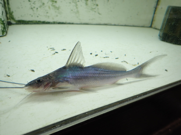 マラジョー産の青いピメロディア入荷!!インディゴブルーピニランプスのインボイスで来るナマズですが、ペルー産のは今までにも入荷したことありましたがマラジョー産はほとんど来ていないと思います。ペルーのインディゴブルーピニランプスは少し灰色がかった色ですが、今回のマラジョー産はビカビカのメタリックブルーです!入荷は1匹のみです!今回2匹しか輸入されていませんのでとても希少なナマズですよ!上段の画像です。2つの画像は同一個体です。