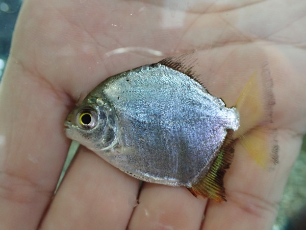 珍しいイリリ産のレインボーパクーです。レインボーパクーの幼魚独特の黒みが弱く、他の産地のとはなんかちょっと雰囲気が違うかな??中段左の画像です。