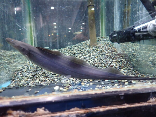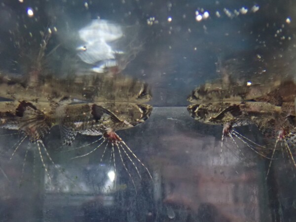 ミニチュアアロワナみたいなアフリカの古代魚。顔付、体型はアロワナそっくりですね。大きなヒレを使ってよく飛び跳ねるので蓋はしっかり!左下の画像です。
