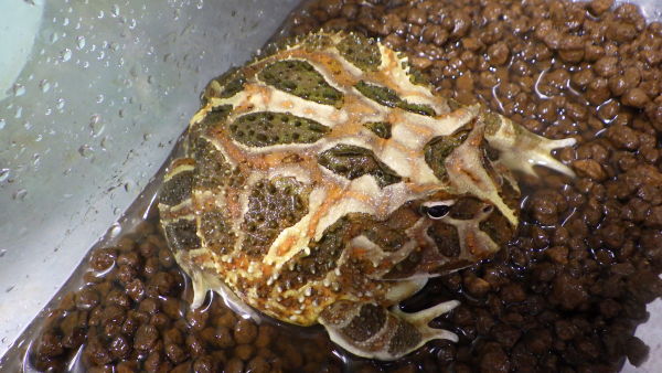 アルビノクランウェルツノガエル ”アプリコット” 左の画像