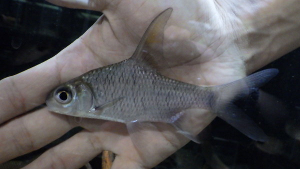 体側に細し縞模様の出るピースカンバルブの1種。以前はピースカンといえばこの種類Puntioplites buluの入荷ばかりだった気がしますが、最近はヒレがオレンジ色になるレッドフィンピースカンバルブのPuntioplites falciferの入荷がほとんどで、ブルシャークバルブの方が希少になりましたね。滅多に入荷しませんのでバルブマニアは必見です!左上の画像です。