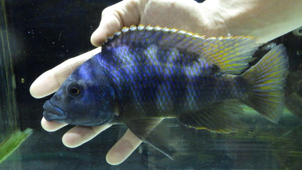 以前ご注文いただき当店で販売した個体ですが、お客様からの下取りで帰ってきました。ドイツブリードの個体なので小さいサイズでもまぁまぁ高価でしたが、当店ではあんまりアフリカンシクリッドは扱っていませんので大特価で販売します!サイズ大きくてしっかりしてますし、発色もキレイですよ!お買い得なのでアフリカンシクリッドの好きな方には超オススメ!ただし、混泳のため多少のスレはご了承下さい。左下の画像です。