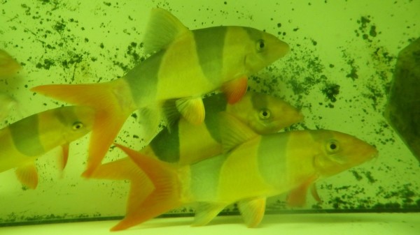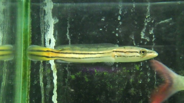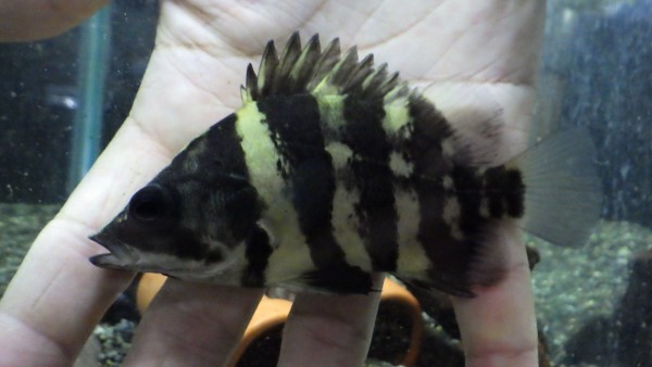 小さめなら小赤も食べられる大きめサイズなニューギニアダトニオが入荷!このサイズからだと飼いやすいですね!中段左の画像です。