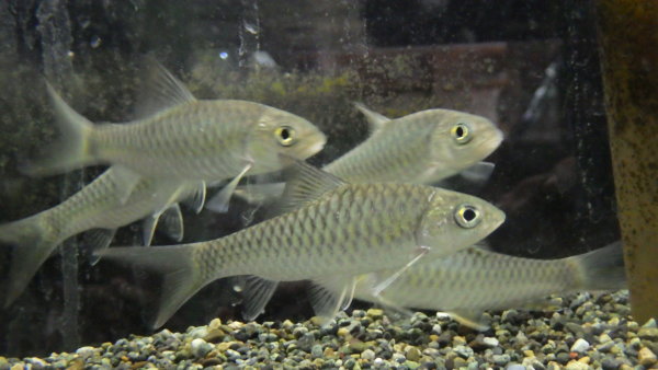 最初に言っておきますが、別に青くないです・・・。なのに何故かブルーマハシール・・・。まぁ何となくですが、鱗の光沢は青灰色っぽい感じがしないこともないかな、っていう位です。でもインド産のトールにしてはちょっと変わった感じがします。シルエットはアロワナカープみたいで、インドからこういう体型のコイはあんまり来た記憶がないです。右上の画像です。