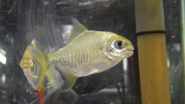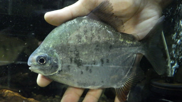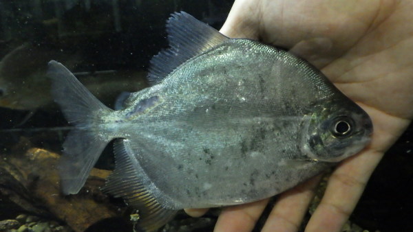 久しぶりの入荷です!パロットパクーのような鼻先の丸い顔付きが特徴の珍しいパクーです。今回は臀ビレに特徴の出たオス確定個体が入荷!黒シミも出ていてかっこいいですが、オスなので飼い込めばシミはもっと増えると思いますよ!右体側の尾筒の辺りの一部がスレて鱗はがれてますがすぐに治ると思いますのでご了承ください。入荷は1匹のみです!上段の画像です。2つの画像は同一個体です。