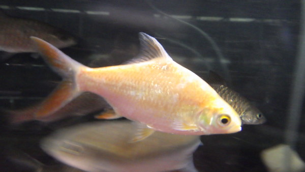 レッドフィンバルブの色変わり。アロワナの混泳相手にも人気あります。サイズ大きめなのでそこそこのサイズの魚ともすぐに混泳できますのでオススメですよ!右下の画像です。