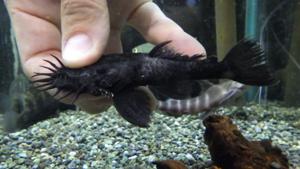 ひげもじゃのしゃもじみたいなプレコです。ちょっとグロいですがそこがかわいくもあり、個人的にはオススメ!今回オスとメス入荷しましたが、メスはちょっとスレてます。すぐ治るとは思いますが。中段左の画像です。