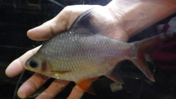 Cyclocheilichthys furcatus 少し前に少数入荷して即売れだった背ビレの長いカッコいいバルブ。以前にこの名前で入荷した魚よりも体高があるなぁと思って調べたらやっぱり別種でした。こっちの方が少し詰まったような体型で顔つきも丸っこいですね。今回も入荷は少数のみです!中段右の画像です。