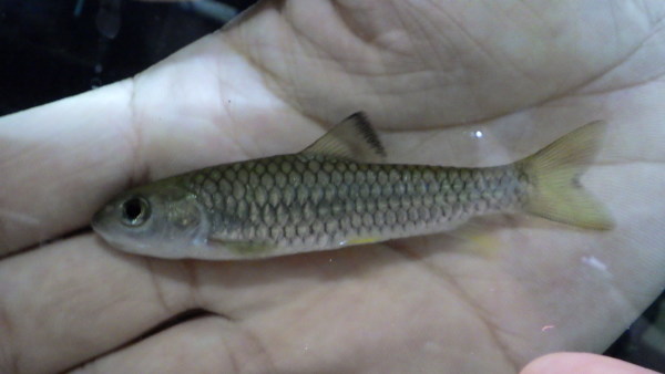 Spinibarbus caldwelli です。数年前に1度だけ大きいサイズの個体が入荷したことがありましたが、大きいのはかなり高価だったので今回超お得!まぁそんなに派手な魚ではありませんが同属のホーランディに似たなかなかカッコいい魚です。ほとんど輸入されない激レアな魚ですのでコイマニアの方は必見です!中段左の画像です。