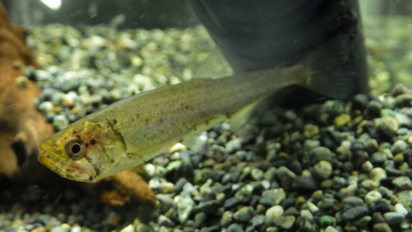 超激レアなヘミオダスの親戚な中型カラシンです。前に16~17cm位の大きいのが入荷したことがありましたが3万円近くしましたから、今回のはかなりお買い得!!大きくなると透明のヘルメットをかぶったような不思議な魚になります!これかなりミステリアスでデメニギスみたいで個人的には大好きです!入荷少数につき早い者勝ちです!左下の画像です。