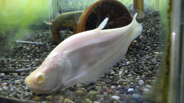 ちょっと大きめなアルビノナイフ入荷!大きくなると神々しさが増しめちゃくちゃ存在感のあるナイフになります!混泳もさせやすいナイスサイズです!左下の画像です。