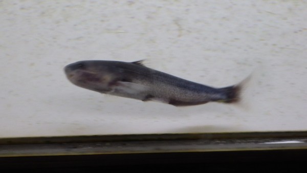 いつも売れないのにまた仕入れちゃった・・・。ずっと泳いでるから飼っていて面白いし、青い体色もキレイだし、個人的には良い魚だと思うのでもっと人気があってもいいような気もしますが、やはり他種との混泳ができないのがネックなのか・・・。大きいサイズが流通することがないので小さいのしか見たことが無い方がほとんどだと思いますが、トイレットペーパーの芯位の大きさになるんですが、そういうサイズの個体は姉金サイズの金魚でも1口2口で食べちゃったりで、そんな姿はやはりモンスターフィッシュなんだなと実感させられたり。まぁ普通に人工飼料バクバク食べるから実際はあまり生き餌あげる機会も無いんですけどね。エキノドルスと流木でシンプルにレイアウトした1800位の水槽でブルーカンディルだけを群れで泳がせるのが昔から夢だったりするんですけどね、いざ空いている1800の水槽があったとしてもそんな贅沢な使い方はできないんだよなぁ・・・。左下の画像です。ずっと泳ぎ回ってるのでキレイな画像が撮れなくてすいません・・・。