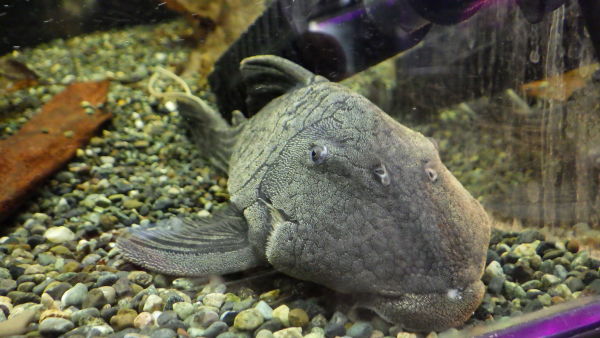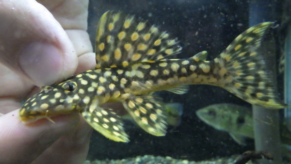 久しぶりの入荷!尾ビレの先、白いフィラメントが長く伸びたキレイな個体です!サイズもフィラメント抜きで20cmありますのでなかなかのボリューム!最近入荷少ないのでパナクェマニアの方いかがですか?すごくカッコいいプレコなので超オススメです!上段の画像です。2つの画像は同一個体です。頭には細かい棘が生えていて、それが光の具合でシルバーに光るんですが、それがすごいキレイです!