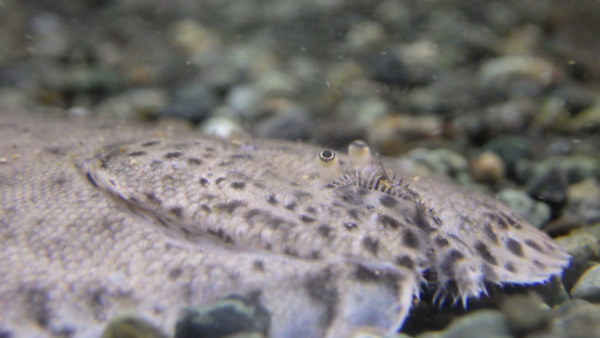 ペルー産の丸い方のカレイは入荷多いですが、細長いシタビラメの方はかなりレアです!もちろんこれも純淡水で飼育が可能です!クネクネした動きが面白い不思議な魚です!ちょっとヒレに欠けてる部分もありますが問題無く再生する程度です。今回のはサイズも大きめでいいですよ!入荷は1匹のみです!中段の画像です。