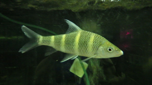 メタリックグリーンのバンドが特徴の中国産ハナマガリ。中国産なので低温にも強く丈夫な魚です。すごくキレイで個人的にも大好きな魚なのでオススメです!左上の画像です。