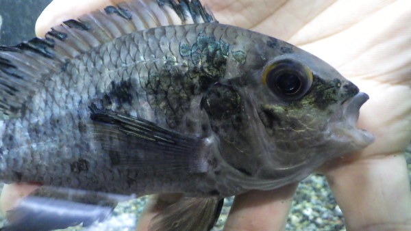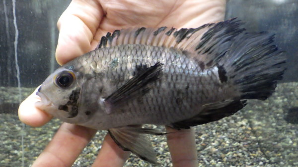 少し前に入荷した個体ですが、ちょっとトリートメントをしてたので入荷情報にアップするのが遅くなりましたが、今は状態ばっちりで絶好調です!!パイクシクリッドではアーミー個体をたまに見かけますが、エキデンスのアーミー個体は初めて見ました!!これ日本初入荷かもしれませんね!?でもエキデンスってもともと熱心なマニアは少ないし、かなりマニアックなグループだからアーミー個体とは言えこれに感動してくれる方もそう多くは無いかも・・・。でも良いんです!!たぶん日本に1匹しかいない魚だと思いますし、熱いマニアほどマイナーな魚に心鷲掴みにされるんです!!この魚に感動してくれる方からのお問い合わせご注文お待ちしております!!上段、中段左の画像です。3つの画像は同一個体です。14日追記:画像撮影の際に気が付きましたが、ほんの少し目に曇りがありました。しばらくで治りそうですし、現状でも気にならない程度だと思いますが、画像でご確認下さい。