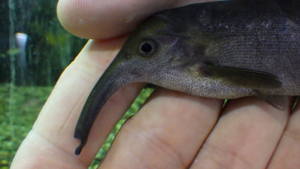 比較対象にと思いペルー産のZungaro zungaroのベビーも仕入れてみました。ズンガロジャウーの方が尾ビレが長いように感じましたが、それはたまたま今回来たズンガロズンガロの尾ビレがスレてるだけかもしれないので明確な判断基準には到底なり得ませんね・・・。他にも髭の模様が細かいとか、背ビレの模様が細かいとか、少し気になるところもありましたが、比較するにもサイズが微妙に違う上にどれも個体差で片付けられるレベルの違いで外見での明確な区別はできませんでした・・・。あとは成長の早さとか、どこまで大きくなるのかとか、育ててみるしかないですね!!こっちは入荷してみたら片目の無いB級品でした・・・。そういうわけなので大特価です!気にならない方大特価ですのでどうぞ!