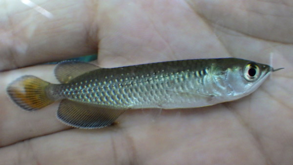超久しぶりに入荷した激レアなハゼです。10年以上前とかなら結構普通に輸入されていて、値段ももっと安かったんですよね・・・。当店に入荷したのはたぶん7~8年ぶりとかじゃないかなと思います。その頃は結構いい加減で、ニューギニアレインボーガジョンとか、パステルレインボーガジョンとかいろいろな名前で売られていた記憶があります。つい最近にもう少し大きい個体が輸入されたのですが小売値で4万~5万円にもなるような卸値で、何年も輸入が無かったので値段の高騰も仕方ないのですが、さすがにこれは高いなぁと思い仕入れるのをためらってしまいました。ですが、今回ちょい小さめですがなんとか安く仕入れることができましたので、この値段ならと思い久々の入荷となりました!飼い込むとすごくキレイなメタリックオレンジが発色する極美ガジョン!日本のタメトモハゼにも近縁な種類ですが、その派手さは比べものになりませんね!今となっては入荷の少ない希少なハゼですので、マニアの方はお見逃しなく!!上段の画像です。2つの画像は同一個体です。