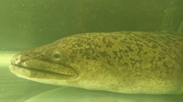 沖縄からビッグサイズなオオウナギが入荷です!クネクネしているので正確には計測できていませんが107~108cmだと思います。頭がもの凄く大きいビッグヘッドな個体で、痩せてないのに体が細く見えます・・・。頭のサイズだけなら120cmアップの個体と同等かそれ以上かも!?こういう大きいサイズの入荷はかなり久しぶりです!!1mアップの個体が入荷したのは2年半ぶりとかですね!鼻先と尾ビレの先にわずかにスレがありますが、このサイズで入荷したことを考えれば着状態は良好です。この頭の大きさですからね、しっかり飼い込んであげたら体も極太に仕上がりそうですね!!大型のオオウナギは滅多に入荷しませんので、お好きな方はお見逃しなく!!