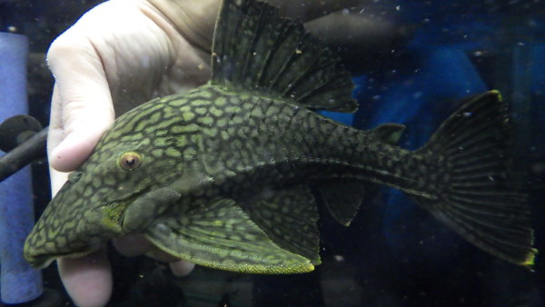 マーブルなアルビノドロイの特大サイズです!ドロイでこのサイズは相当デカいですよ!しかも変わった模様のアルビノですから希少価値はかなりのものだと思います!残念なことに後ろのヒレが片方短いですが、この存在感の前ではもはやそんなことは関係ないレベルではないでしょうか?!まぁヒレ自体はしっかり残ってますので再生するかは経過を見つつ、もし生えてこないようなら先を少しカットすれば生えてくるとは思います。ただし魚のサイズが大きいので幼魚のようにすぐに再生という訳にはいかないとは思いますので、カットするなら自己責任で・・・。東京タワー水族館の思い出にこの1匹、いかがですか!?