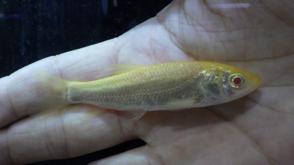 アルビノも入荷しました!まぁこっちの方がキレイですよね、やっぱり。底が黒っぽい池で飼うとノーマル個体はどこにいるか分からなくなっちゃうんでね、そういう環境で育てたい方はアルビノがオススメ!こっちも以前のようなコンスタントな入荷は無く、忘れた頃にポツポツと入ってくる程度です。なので気になってたという方はこの機会をお見逃しなく!!