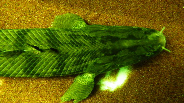 まだトリートメント中ですが、発色がヤバいことになってきたのでトリートメントの途中経過ということで画像アップします。入荷して今日で5日目で、まだボロボロで薬浴中ですがすでにこの発色です!額の模様、頬の放射模様はまるでビキールみたいです!!体側のバンドも濃く発色しており素晴らしいです!これトリートメントが済んで本調子になったらとんでもない個体になりますね!?入荷時に白くなっていた尾ビレの先はやはり欠落してしまいましたので入荷時に実寸で60cmあった全長が現状は58~59cm位になっております。ですが尾ビレは問題無く再生しますので再生すれば60cm超えてきますのでご安心下さい。