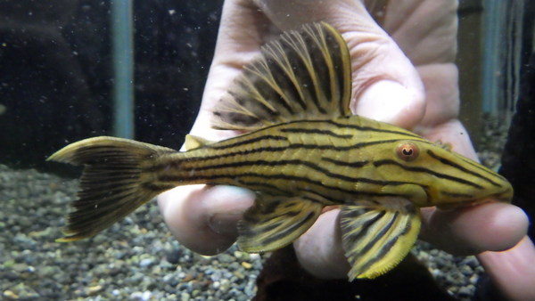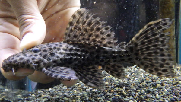 これ超カッコいい!!体高のある体型で、体色は明るいオレンジがかった茶色にやや大きめの黒いスポットがはっきり入っていてコクリオドンにしてはかなり派手な印象を受けます。コクリオドンの仲間ですからもちろんコケ掃除もしてくれると思いますし、掃除だけじゃなく鑑賞の面においても十分楽しめるプレコだと思います!