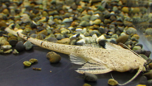 名前の通り白っぽい体色が特徴のバンジョーキャットの仲間です。今回入荷したのはこの種にしてはちょっと大きめ!8cmもあるとホワイトバンジョーにしてはかなり大きいなという印象です!大人しいナマズですし、最大でも12cm位の種類なので小型魚との混泳もいけますよ!右上の画像です。