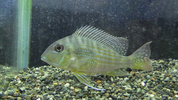ジャリ産のゲオファーガスが入荷です。体側にはうっすらと細いバンドが何本も入り、縦のメタリックなラインも細くてちょっと変わった感じですね。黄色い発色もキレイでこれからの成長が楽しみです!右上の画像です。