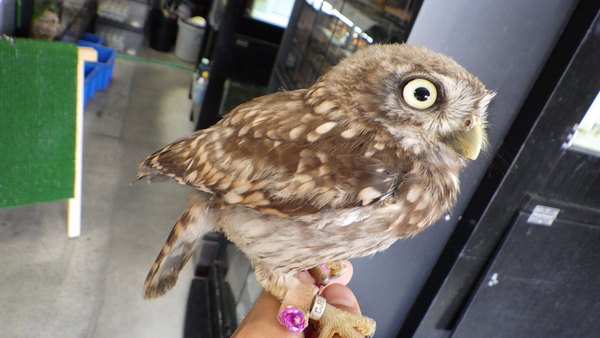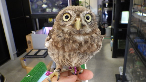 最近はなぜか見かける機会が少なくなっていたコキンメ。ワイルド個体の入荷がほとんどだった頃はあまり馴れない種類というイメージもありましたが、今回の個体のようなブリードのインプリント個体はとても大人しくて飼い易いですよ!今回入荷した個体もとっても良く慣れています!アフコノよりもさらに小さい小型のフクロウです。現状はまだ綿毛が少し残ってる感じですので、最終的にもう一回り位はおおきくなりますね!