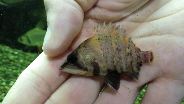 手のひらサイズの淡水カレイが入荷しました。このサイズならメダカも食べられるから飼い易いですね!小さいサイズを赤虫で育ててもなかなか大きくなりませんからね・・・。左下の画像です。