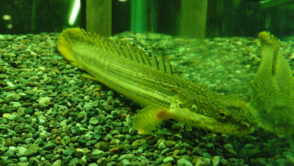 オルナティピンニスも入荷しましたが状態が良くないです。元気は元気なんですが、体側に何やら嫌な感じのデキモノが・・・。スネークヘッドに関してはこういうのが致命傷になりかねないんですよね、いきなり死んだりしますから・・・。とりあえず薬浴してトリートメントします。キレイに治ってくれたら販売しますので、その時はまたご紹介します。